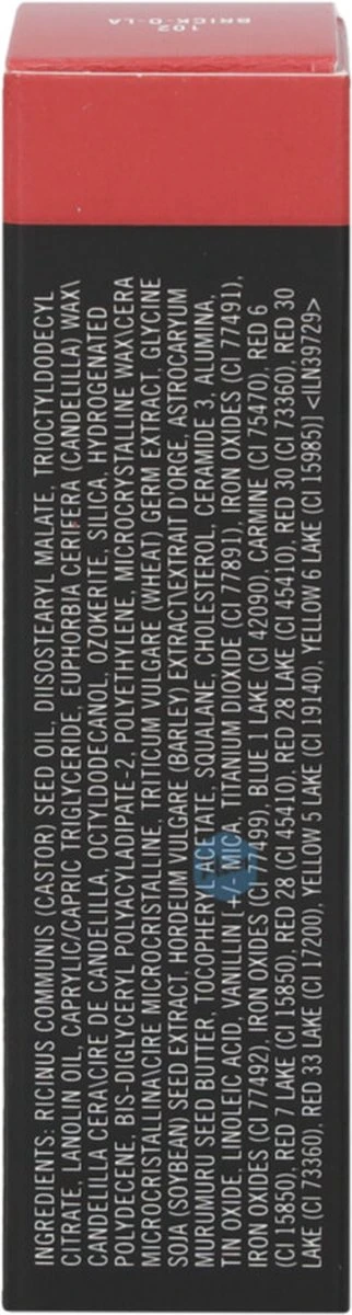 | Ingrediënten | Ricinus Communis (Castor) Seed Oil, Trioctyldodecyl Citrate, Glyceryl Triacetyl Hydroxystearate, Euphorbia Cerifera (Candelilla) Wax\Candelilla Cera\Cire De Candelilla, Octyldodecanol, Silica, Simmondsia Chinensis (Jojoba) Seed Oil, Beeswax\Cera Alba\Cire D?Abeille, Sesamum Indicum (Sesame) Oil, Ozokerite, Copernicia Cerifera (Carnauba) Wax\Cera Carnauba\Cire De Carnauba, Cetyl Ricinoleate, Microcrystalline Wax\Cera Microcristallina\Cire Microcristalline, Tocopherol, Ascorbyl Palmitate, Vanillin, Alumina, Tin Oxide, Calcium Aluminum Borosilicate, Calcium Sodium Borosilicate, [+/- Mica, Titanium Dioxide (Ci 77891), Iron Oxides (Ci 77491, Ci 77492, Ci 77499), Bismuth Oxychloride (Ci 77163), Blue 1 Lake (Ci 42090), Carmine (Ci 75470), Red 6 Lake (Ci 15850), Red 6 (Ci 15850), Red 7 Lake (Ci 15850), Red 21 (Ci 45380), Red 21 Lake (Ci 45380), Red 28 Lake (Ci 45410), Red 30 Lake (Ci 73360), Red 33 Lake (Ci 17200), Yellow 5 Lake (Ci 19140), Yellow 6 Lake (Ci 15985), Yellow 10 Lake (Ci 47005)] Gelieve er rekening mee te houden dat ingrediëntenlijsten kunnen veranderen of variëren. Raadpleeg de ingrediëntenlijst op de productverpakking voor de meest accurate lijst met ingrediënten. |